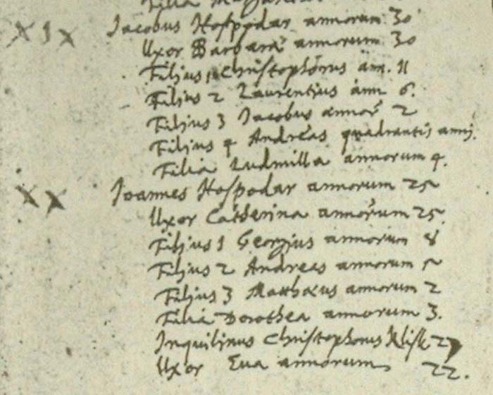 Zwei weitere Familien aus Welbin tragen den Namen Hospodar, Laurentius und Anna Hospodar, beide 24 Jahre alt und Georg und Barbara Hospodar, 32 bzw. 30 Jahre alt. Bei beiden Familien sind keine Kinder eingetragen. Eine Verwandtschaft zu einer dieser Familien konnte ich bis jetzt noch nicht nachweisen.