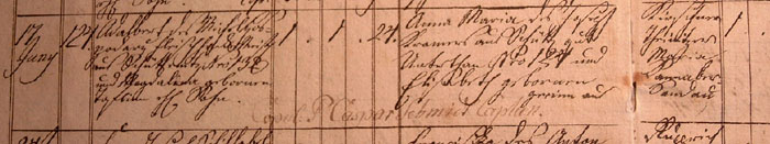 Dieser Heiratseintrag vom 17.06.1800 gibt ein Rätsel auf. Es wird geschrieben: