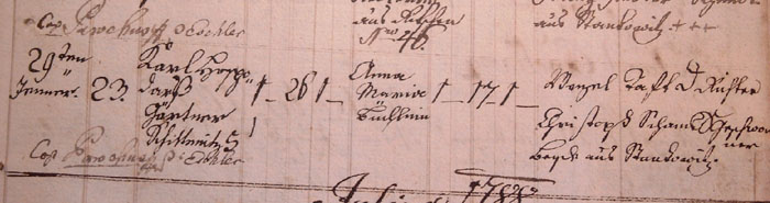 Karl heiratete am 29. Jan. 1788 Anna Maria Büchel aus dem Nachbardorf Stankowitz 23.